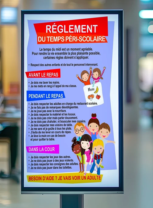 Dans les écoles, universités ou centres de formation, une bonne communication visuelle contribue à un environnement fluide, engageant et moderne.